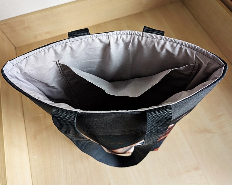 Uvnitř má jednu otevřenou kapsu a velký prostor, který můžete využít naprosto pro cokoliv – od běžného obsahu vaší kabelky až po nákup.