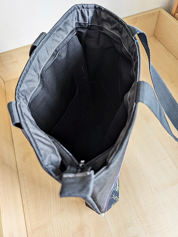 Uvnitř má jednu otevřenou kapsu a velký prostor, který můžete využít naprosto pro cokoliv – od běžného obsahu vaší kabelky až po nákup nebo svačinu na výlet.